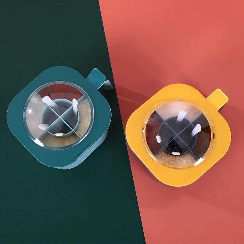 1 Set Large Capacity Sealing Seasoning Box with Handle Spoons 4 in 1 Multi Grids Spice Jar Kitchen Accessories