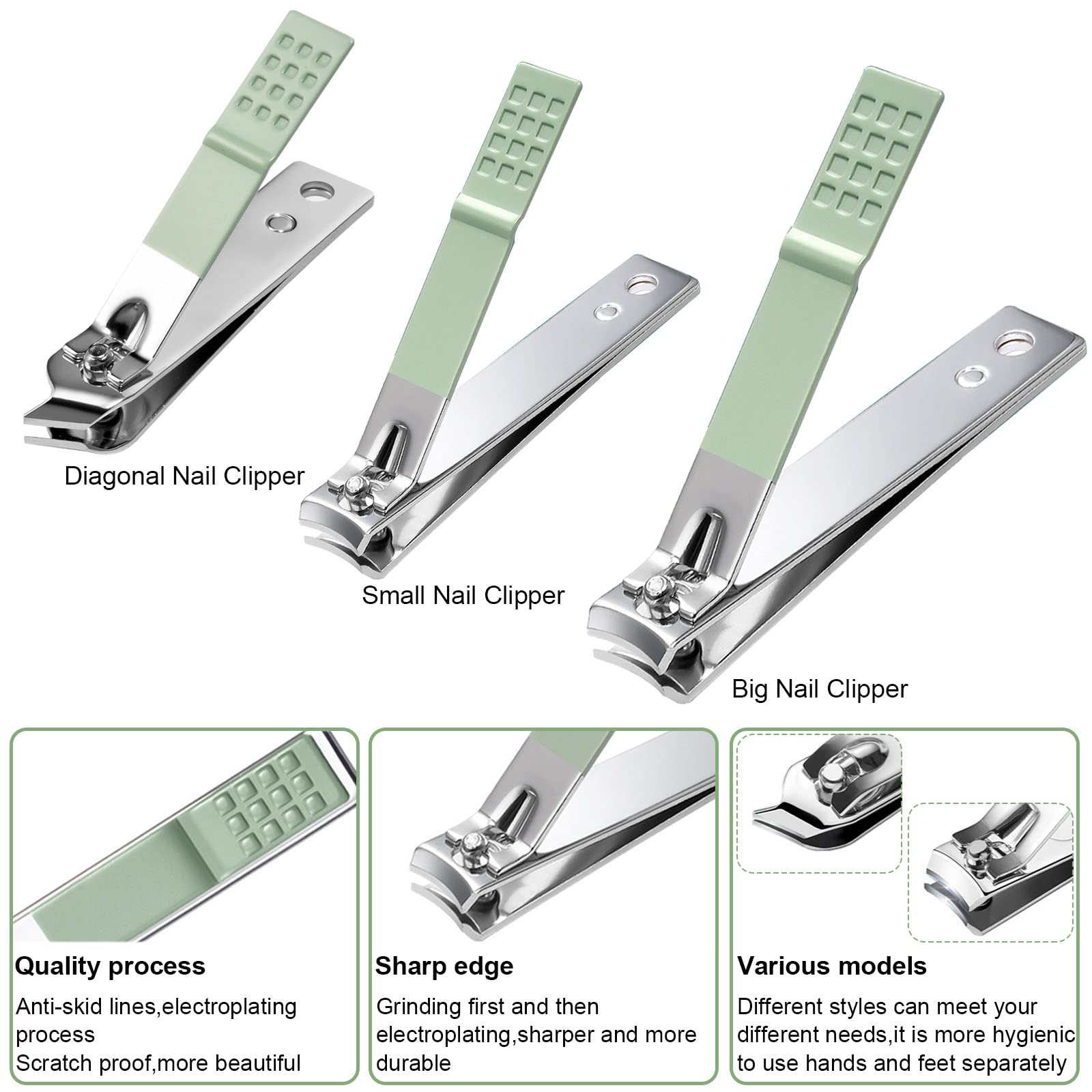 Nail Clippers Premium and Durable - Our nail clippers kit is made of high-quality stainless steel. The tools are all sharp and highly-durable without rusting. Different tools are designed for different use (for face, hand and foot). Our purpose is to provide a comfortable and sound life for you.