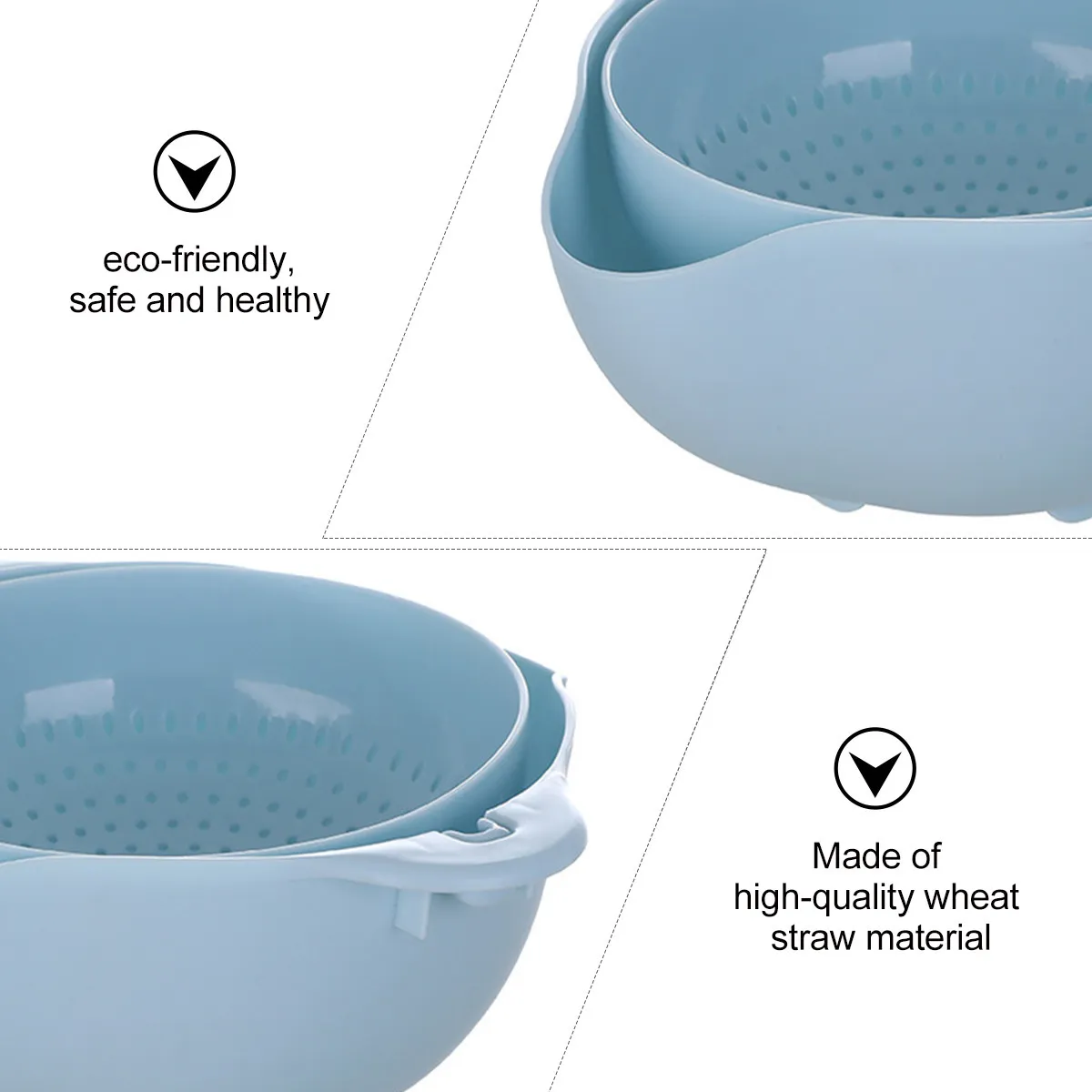 1Pcs Eco-Friendly Wheat Straw Double-Layer Colander Drain Basket