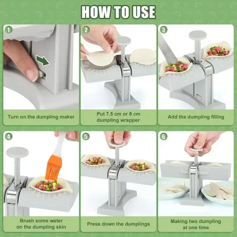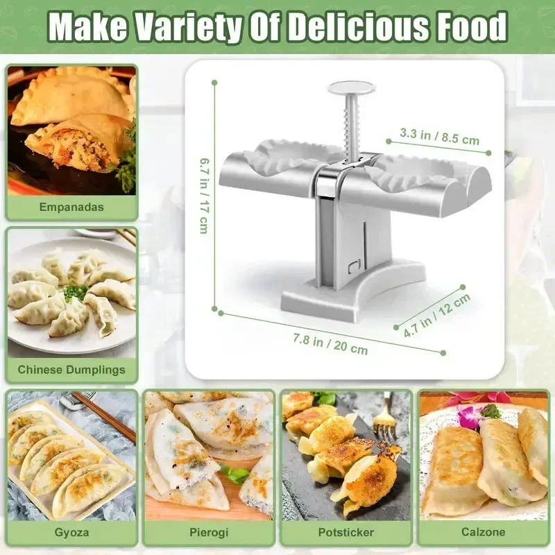 1.Convenient and Fast: Wrap two at a time for quick dumplings, quick and easy.Without any skill, this dumpling maker also easily lets you make beautiful wavy dumplings in no time.