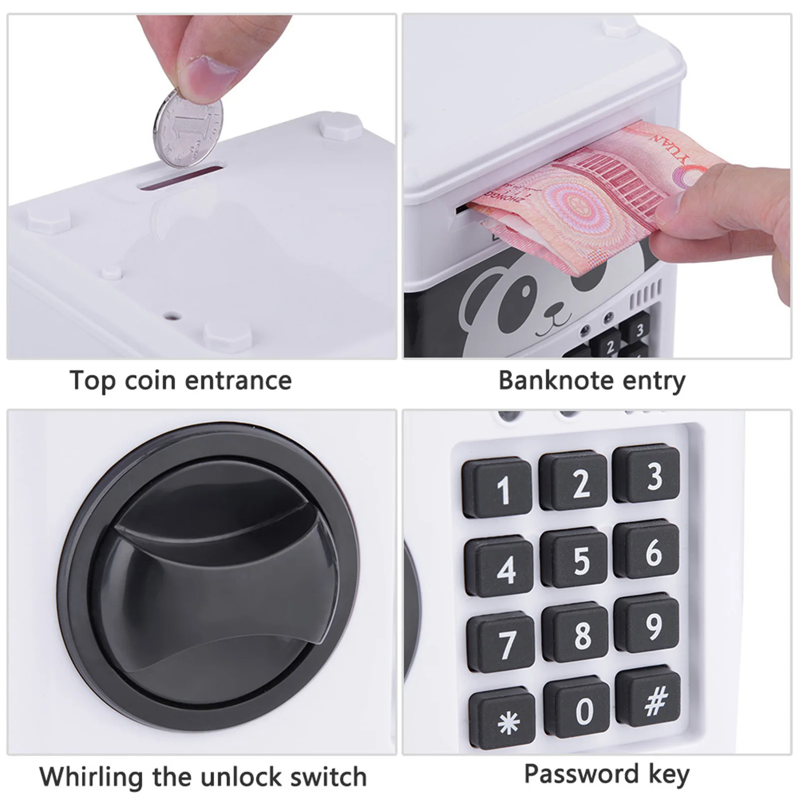 Features:This is a mini cute money box for both and paper money deposit.