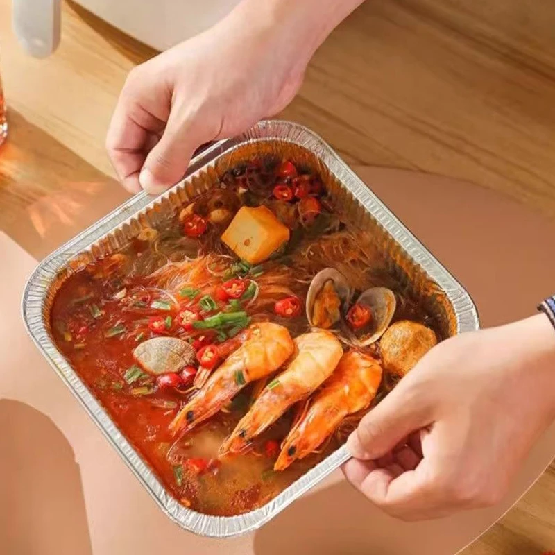 2. Aluminum foil construction: This pan is made from durable aluminum foil, which provides excellent heat conductivity and even heat distribution. It ensures that your food is cooked evenly and thoroughly. The aluminum foil material also makes the pan lightweight and easy to handle.