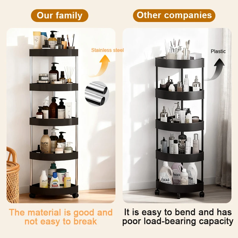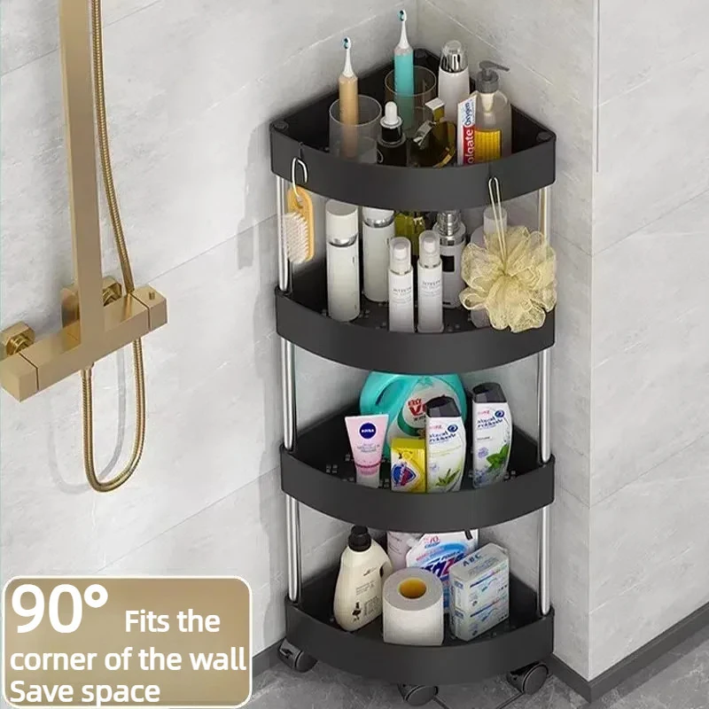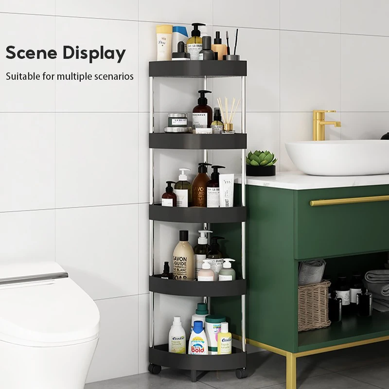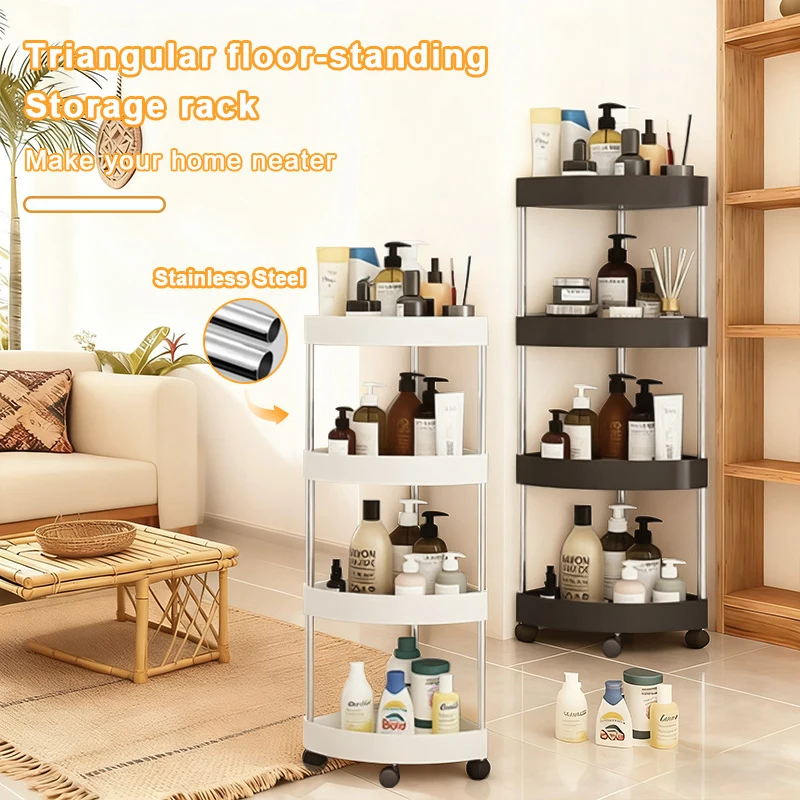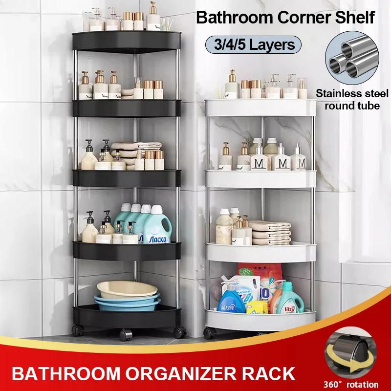 New Stainless Steel 2/3/4/5 Layers Home Organizer Rack Bathroom Corner Shelf With Wheel Bedroom Toiletries Storage Rack