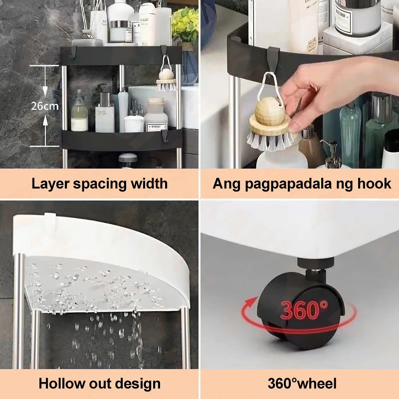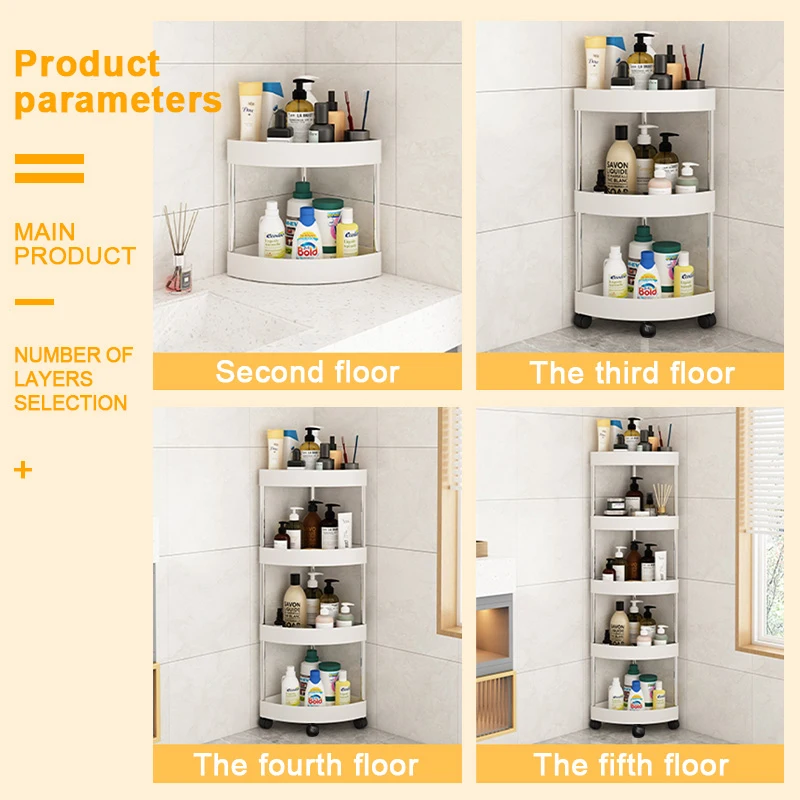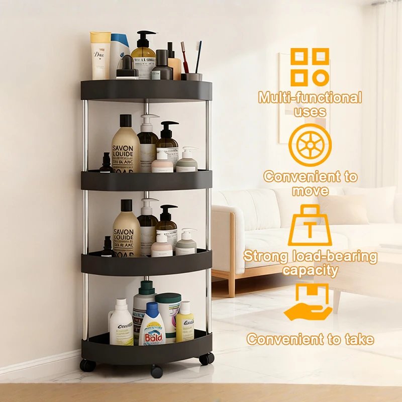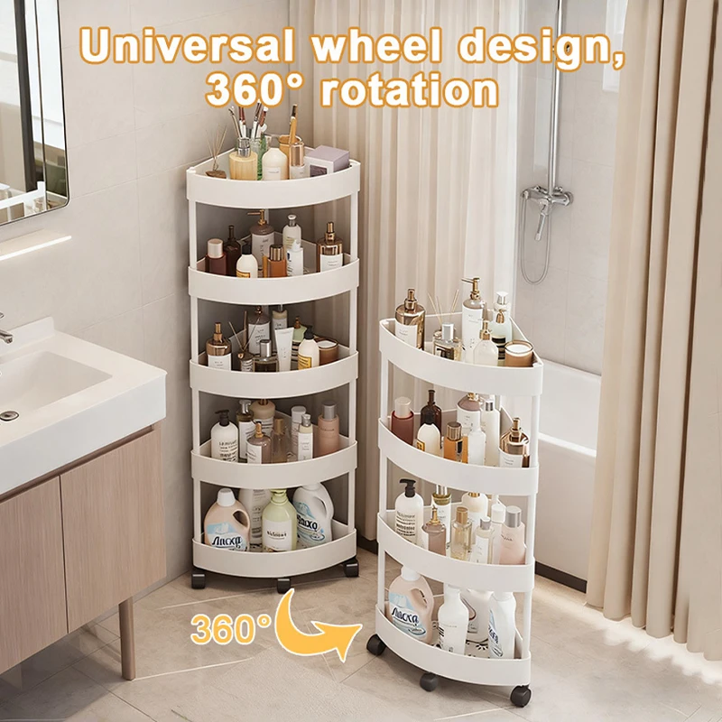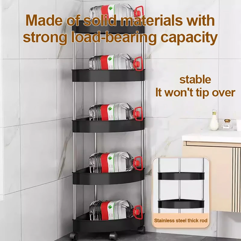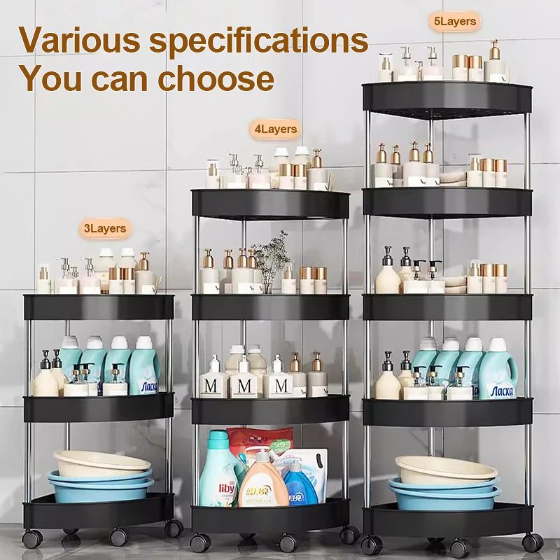 New Stainless Steel 2/3/4/5 Layers Home Organizer Rack Bathroom Corner Shelf With Wheel Bedroom Toiletries Storage Rack