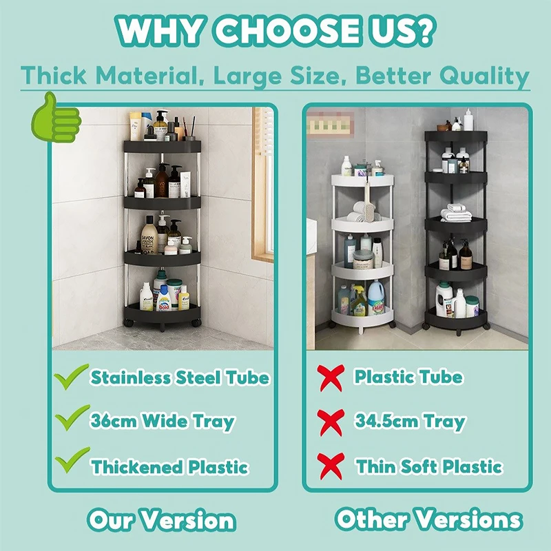 ⭐️The material used is PP plastic+stainless steel pipe, which is specially designed for small spaces such as kitchens, bedrooms, living rooms or bathrooms. The extra corners are rationally used to store items and effectively save space.